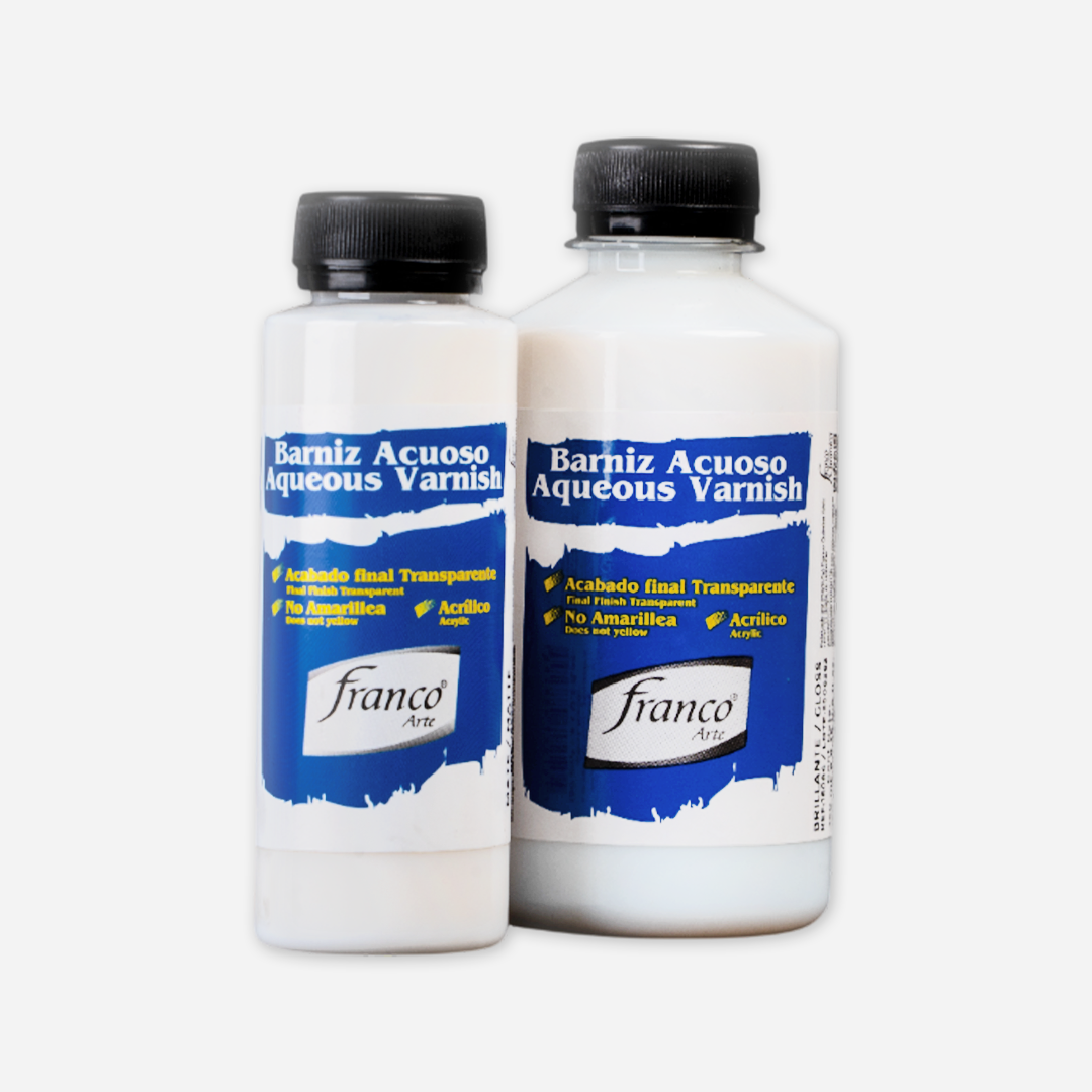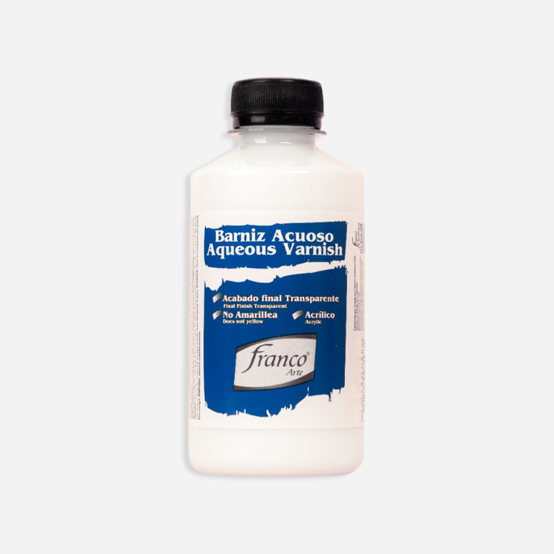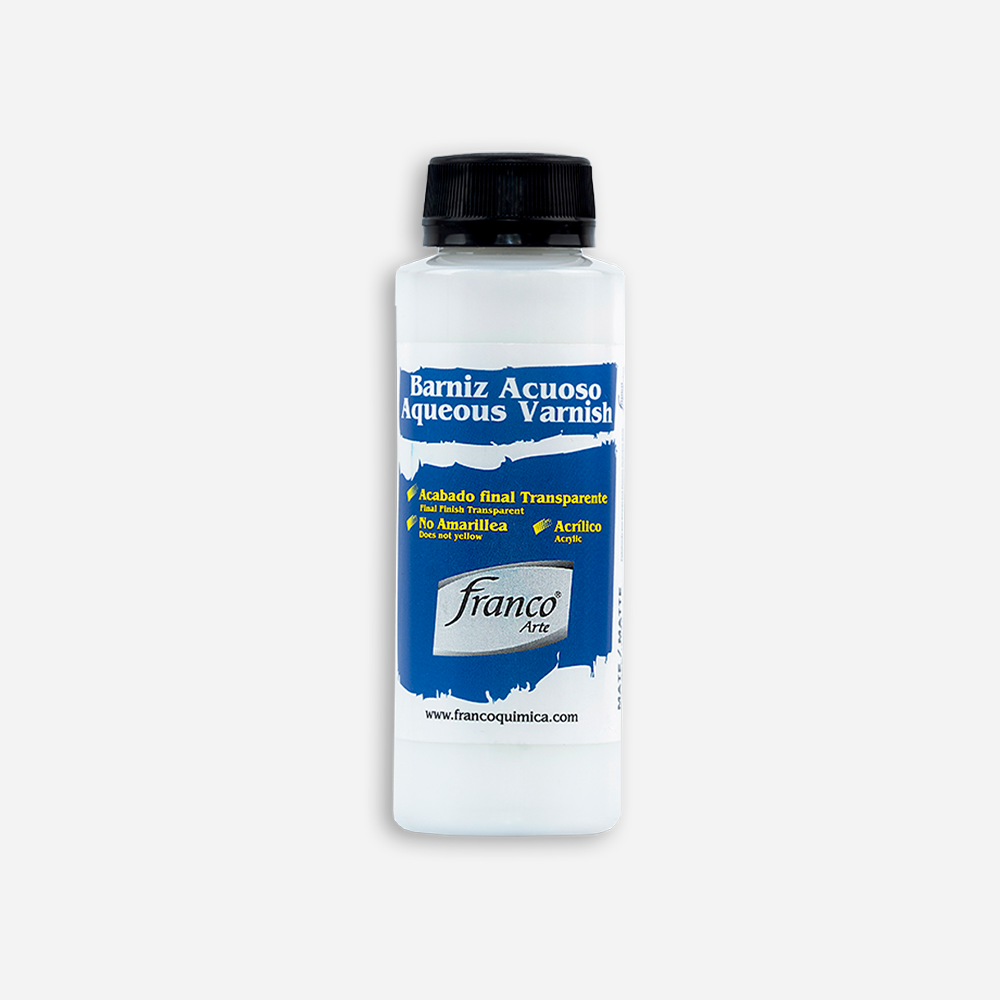 El Barniz Acuoso Franco Arte es un sellador y protector de acabado final base agua, que no amarillea con el tiempo. Disponible en acabados brillante y mate, está diseñado para realzar y preservar tus trabajos manuales o artísticos, proporcionando una capa uniforme, segura y de secado rápido.