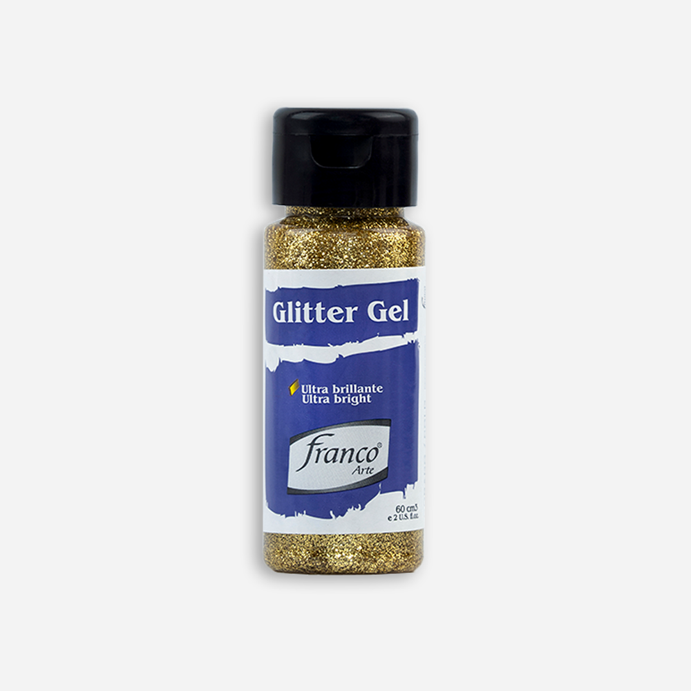 El Glitter Gel Franco Arte es una mezcla de escarcha (mirella) suspendida en un gel base agua, diseñada para brindar un efecto brillante y decorativo. Su textura permite una aplicación controlada sobre múltiples superficies, dejando un acabado llamativo y lleno de luz.