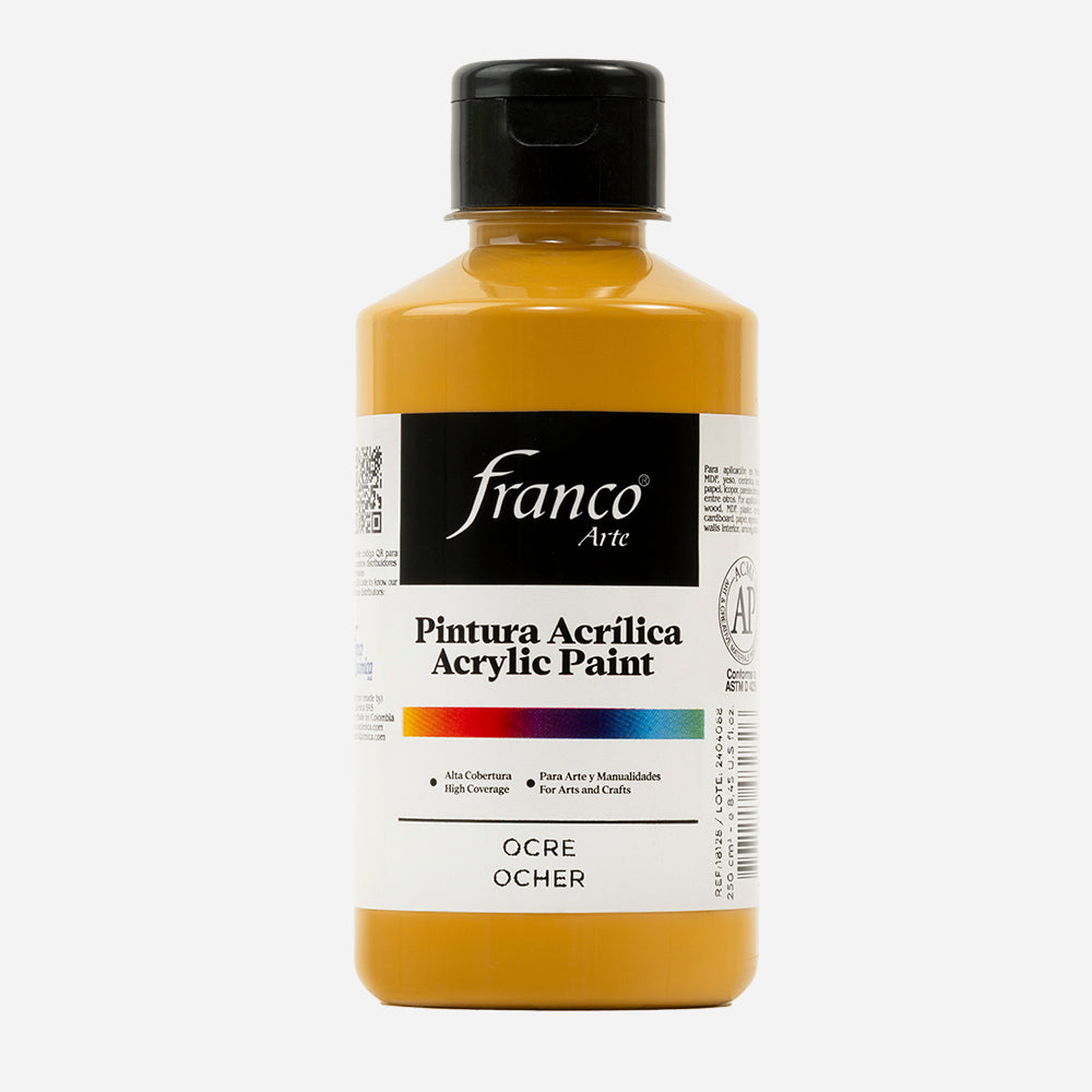 Descubre una pintura versátil, segura y de alto desempeño. La Pintura Acrílica Franco Arte está elaborada con emulsiones acrílicas base agua, ofreciendo una excelente adherencia, cobertura superior y un acabado profesional. Diseñada para creadores exigentes, esta pintura es ideal tanto para proyectos artísticos como decorativos.