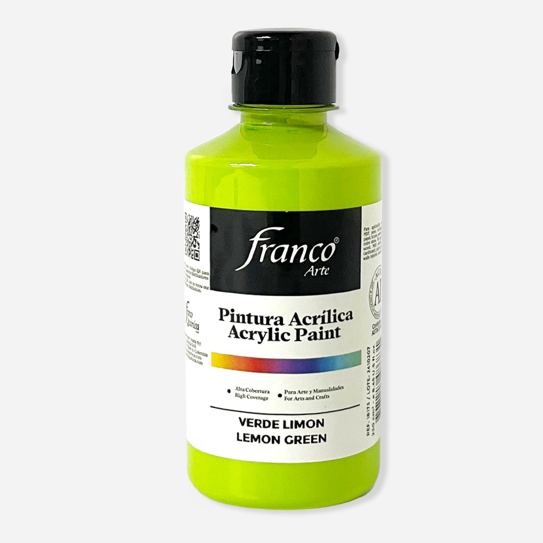 Descubre una pintura versátil, segura y de alto desempeño. La Pintura Acrílica Franco Arte está elaborada con emulsiones acrílicas base agua, ofreciendo una excelente adherencia, cobertura superior y un acabado profesional. Diseñada para creadores exigentes, esta pintura es ideal tanto para proyectos artísticos como decorativos.