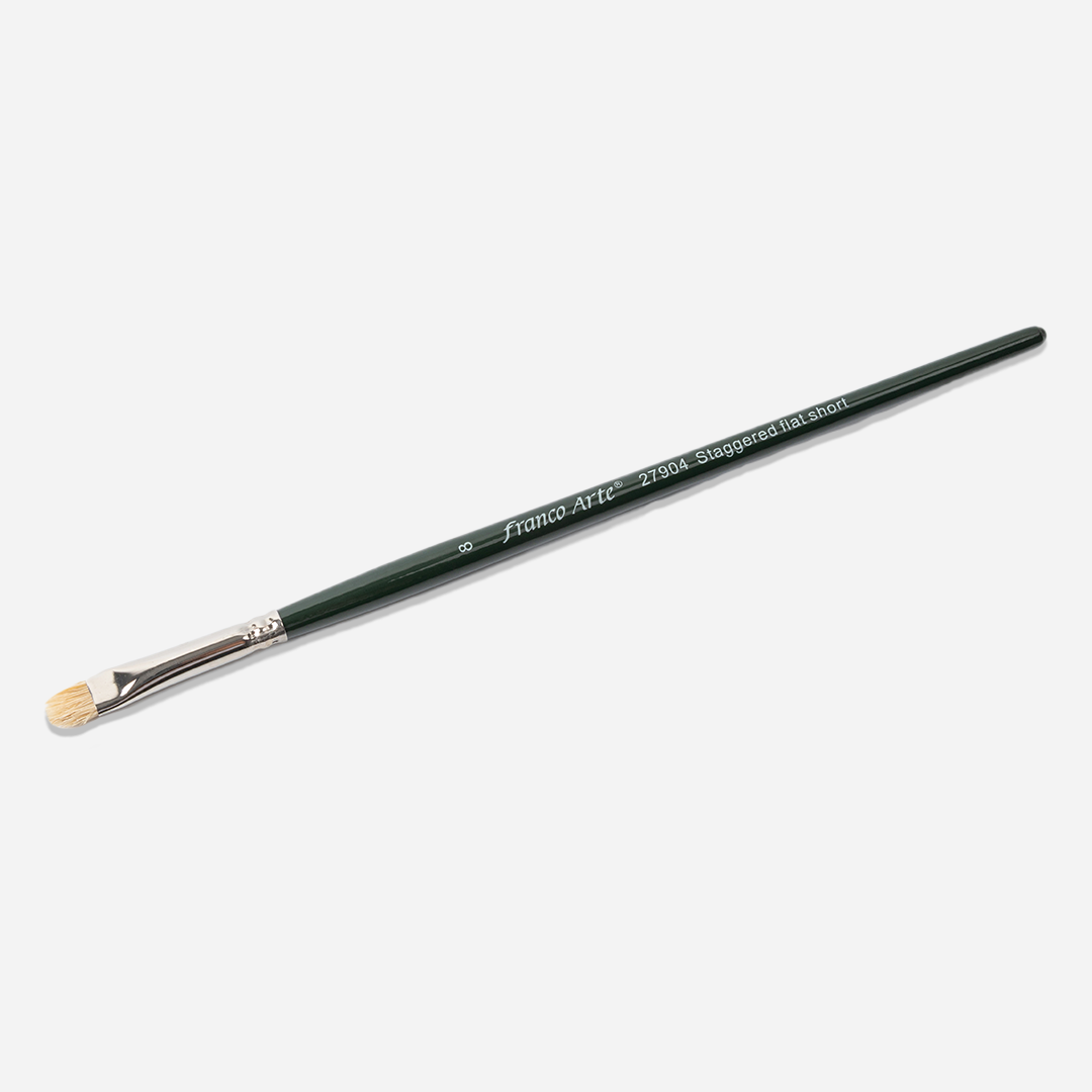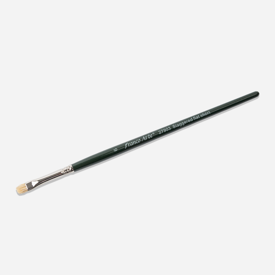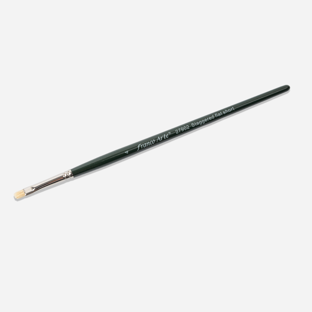 El Pincel Plano Escalonado Franco Arte es una herramienta versátil, diseñada para crear efectos únicos, con acabados texturizados y transiciones suaves. Su corte irregular en niveles —también conocido como «escalonado»— permite trabajar con gran precisión en técnicas decorativas, proyectos creativos y efectos artísticos especializados.