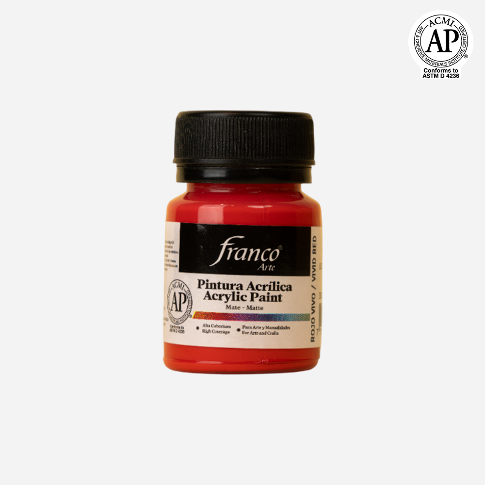 Descubre una pintura versátil, segura y de alto desempeño. La Pintura Acrílica Franco Arte está elaborada con emulsiones acrílicas base agua, ofreciendo una excelente adherencia, cobertura superior y un acabado profesional. Diseñada para creadores exigentes, esta pintura es ideal tanto para proyectos artísticos como decorativos.