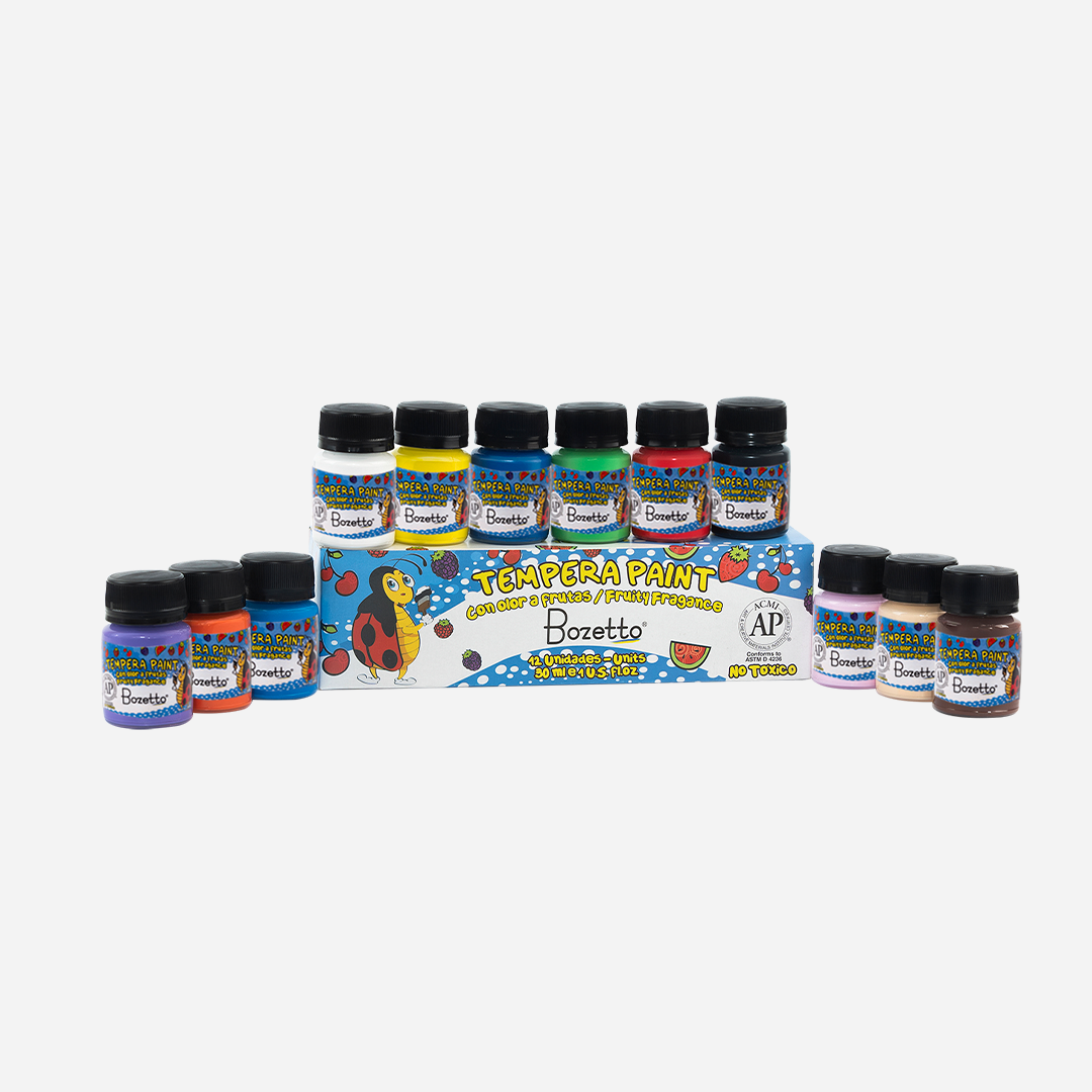 El Set de Vinilo Escolar con Olor Bozetto es perfecto para fomentar la creatividad desde la infancia. Estas témperas a base de agua, no tóxicas, han sido formuladas especialmente para trabajos escolares y actividades artísticas. Su consistencia permite una fácil aplicación y excelente cobertura en una amplia variedad de superficies.